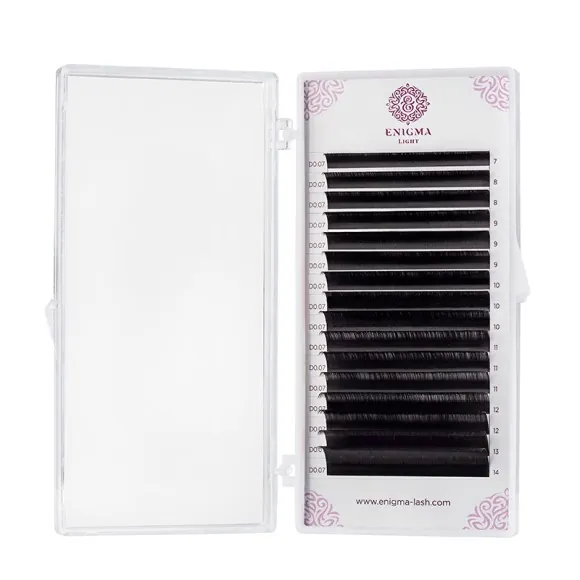 Встречайте новинку ресниц от бренда Enigma: ресницы Enigma light, - теперь качественные ресницы стали более доступными! Ресницы Enigma Light изготовлены из высококачественного классического волокна, упругие, легкие и ультрачерные, не деформируются в процессе работы и отлично держат форму во время носки. Легко миксовать с ресницами Enigma благодаря схожести изгибов. Фольгированная подложка удобна в применении, планшет всегда остается чистым. Подложка вынимается из палетки. На каждой линии указаны полные параметры: толщина, изгиб, длина. Оптимальная клейкость ленты обеспечивает легкое и быстрое формирования пучков. Удобная подложка с клейкой обратной стороной позволяет закрепить ресницы на планшете. На каждой линии указаны полные параметры: толщина, изгиб, длина. Оптимальная клейкость ленты обеспечивает легкое и быстрое формирования пучков для объемного наращивания.