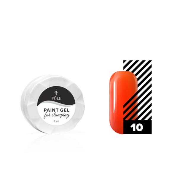 Гель-краска для стемпинга POLE №10 неоново-оранжевая (6 мл.)