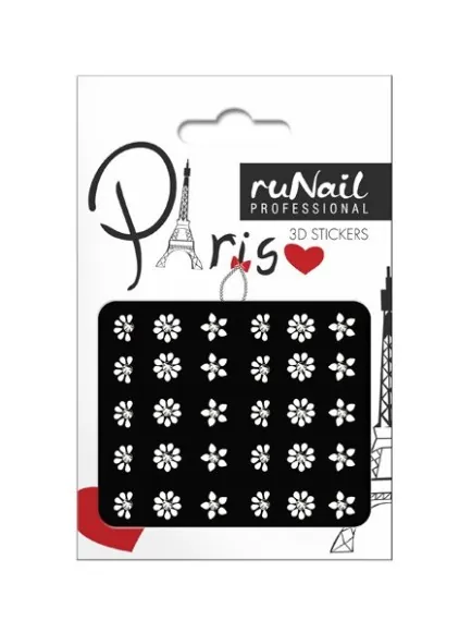 - Наклейки для дизайна ногтей 3D (белые цветы), №1672, ruNail